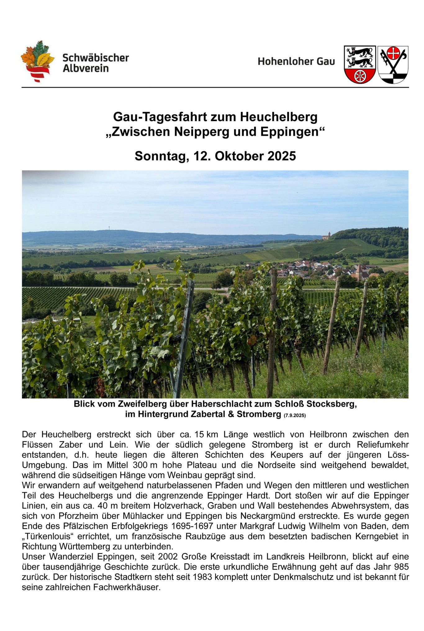 Ortsgruppe Mainhardt > Veranstaltungen > Gau-Tagesausfahrt zum Heuchelberg