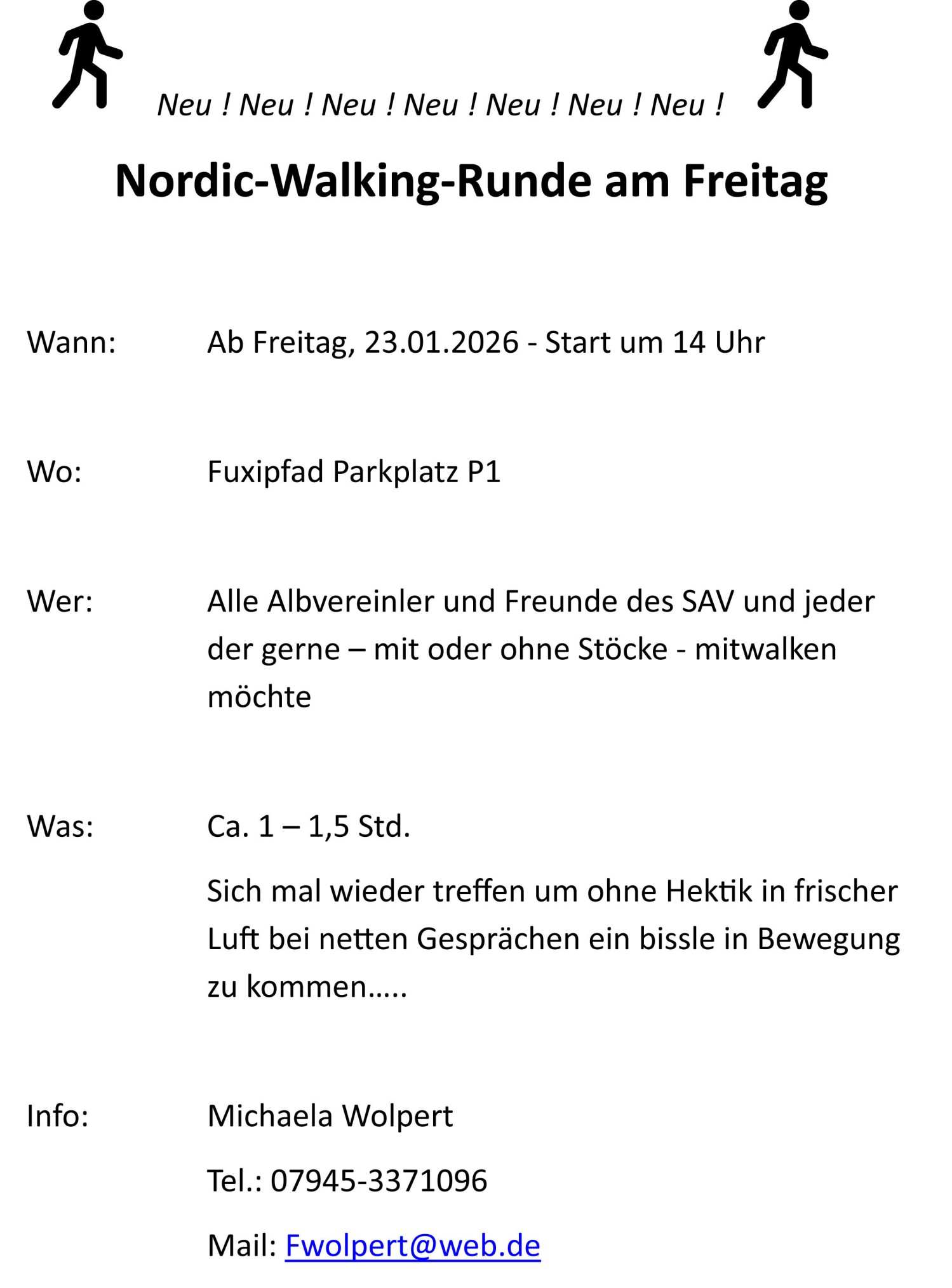 Anmerkung: Bitte immer am Veranstaltungstag nochmals WhatsApp checken, falls Wetter- oder Krankheitsbedingte Änderungen notwendig wären – Danke