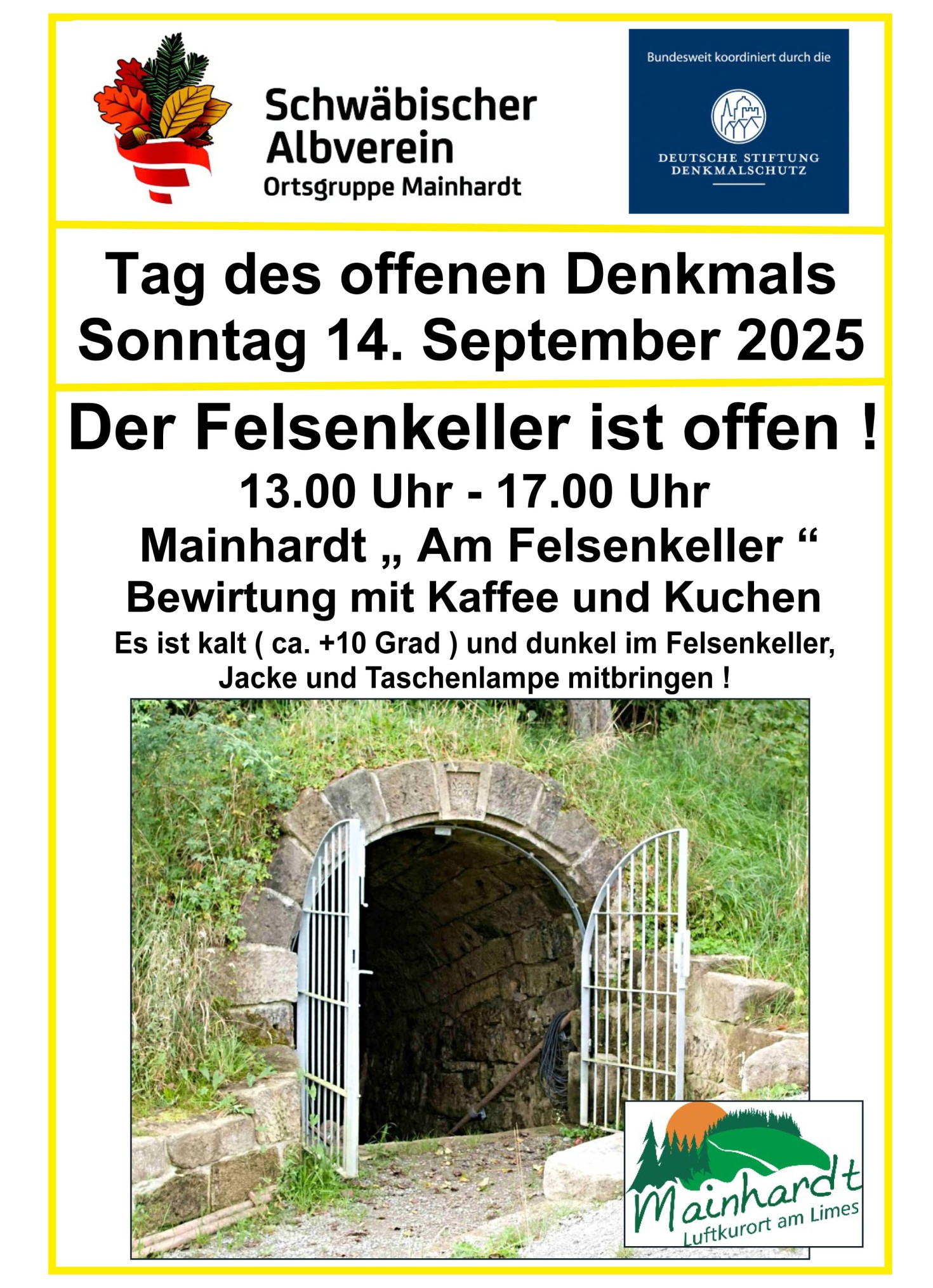 Der Felsenkeller ist zur Besichtigung von 13 – 17 Uhr geöffnet.