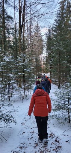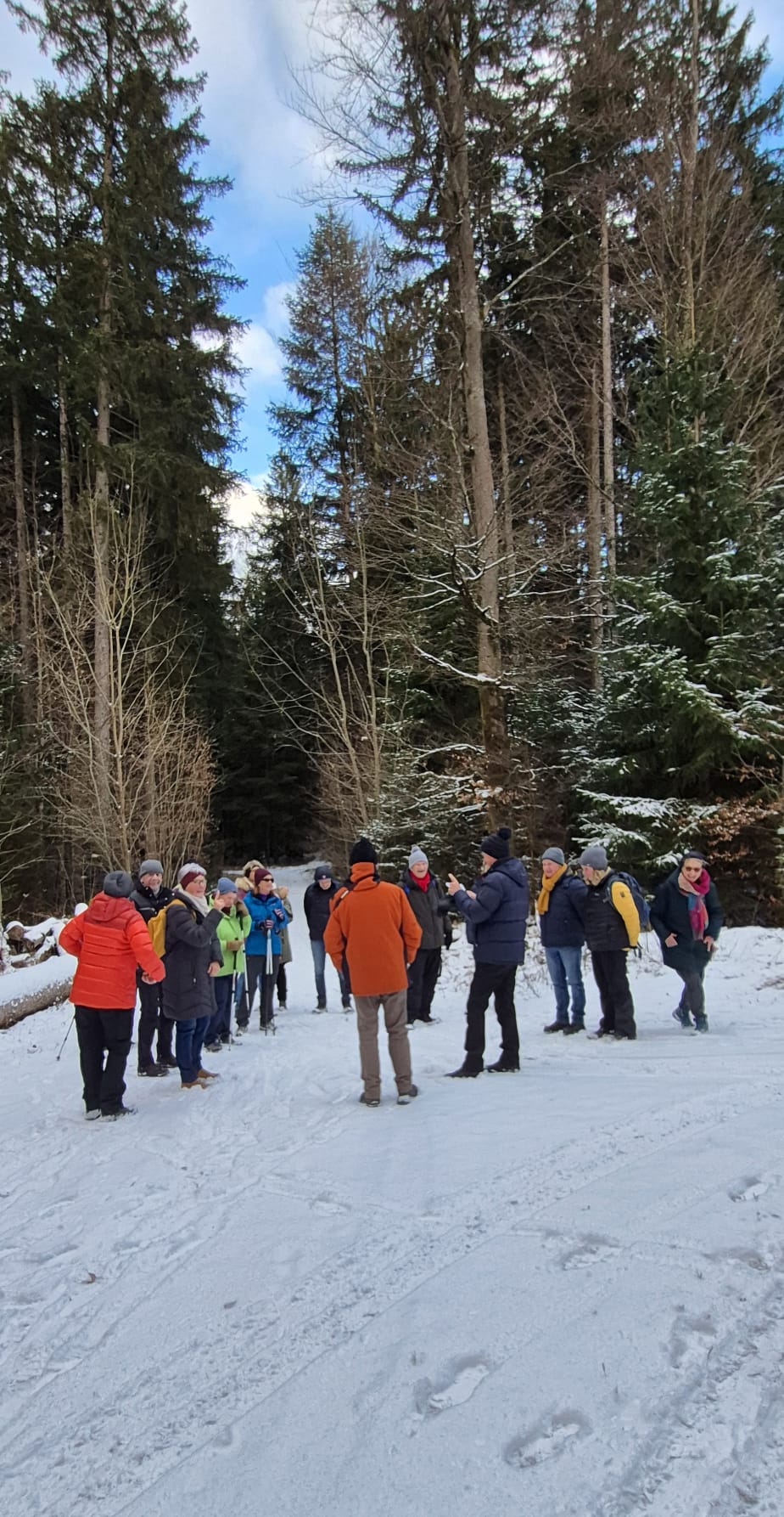 Jahresauftaktwanderung durch den verschneiten Winterwald mit 24 Teilnehmer. Es gab Kaffee und Hefezopf.